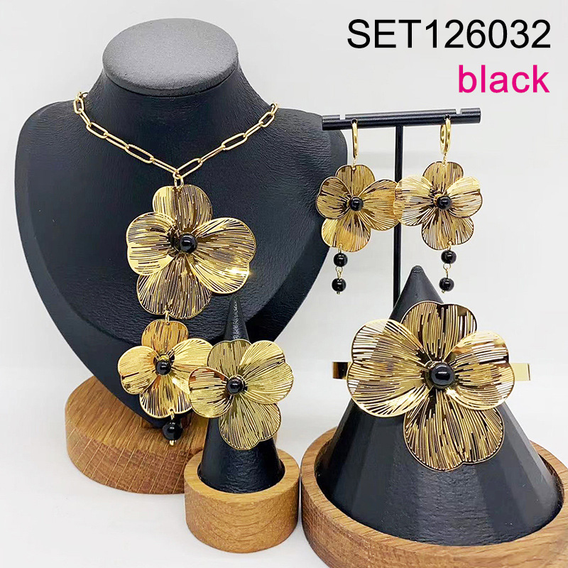 Level B Stainless Steel New Trendy Women Jewelry Pearl Style/Plastic Beads Flower Golden 4pcs SET