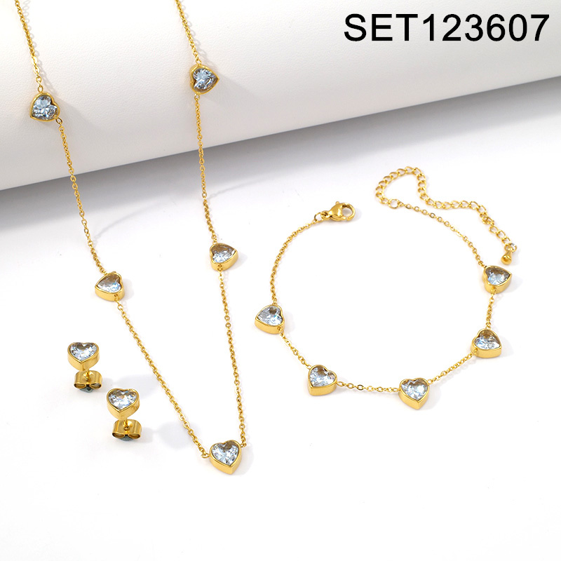 Level A Stainless Steel New Trendy Women Jewelry Heart Golden Valentine's Day 3pcs SET