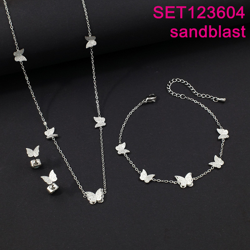 Home > Level A Stainless Steel New Trendy Women Jewelry Sandblast Animal Butterfly 3pcs SET