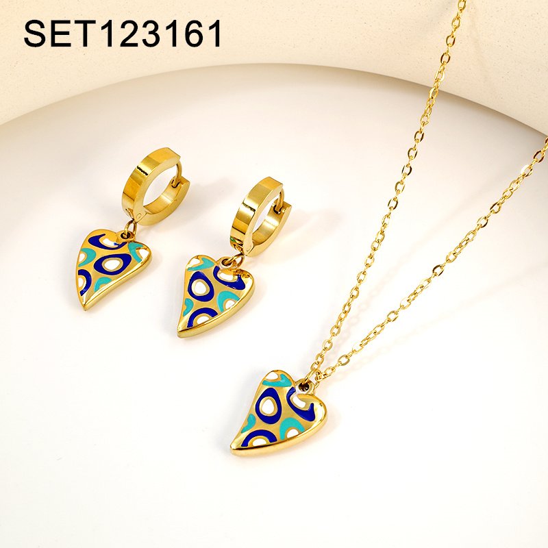 Level B Stainless Steel Jewelry New Trendy Drip Oil/Enamel Heart Golden Valentine's Day SET