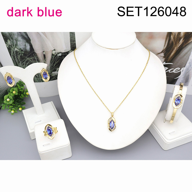 Level B Stainless Steel New Trendy Women Jewelry Geometry Dark blue Zircon Golden 4pcs SET