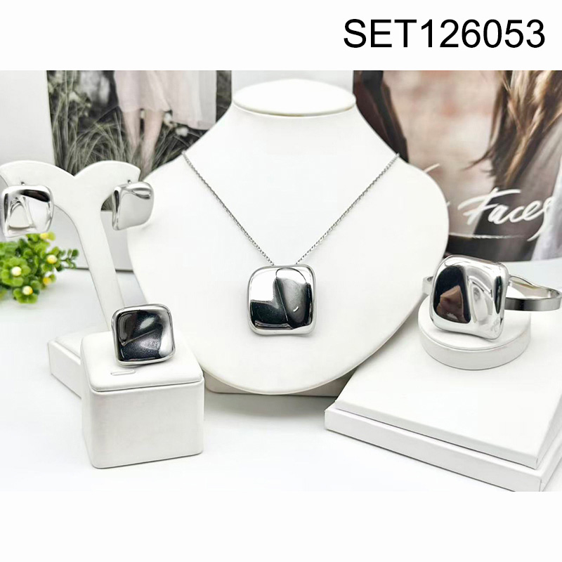 Level B Stainless Steel New Trendy Women Jewelry Square Steel color 4pcs SET