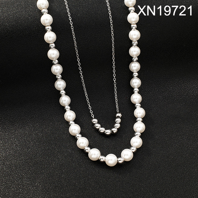 Level B Stainless Steel New Trendy Women Jewelry Two Layers Chain Pearl Style/Plastic Beads Steel color Necklace