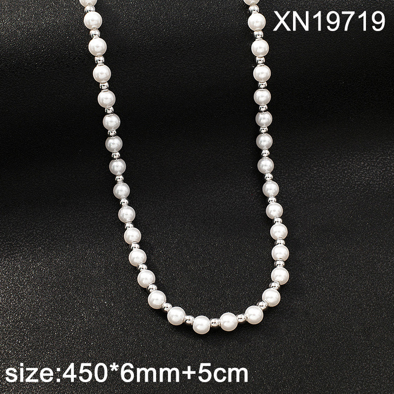 Level B Stainless Steel New Trendy Women Jewelry Pearl Style/Plastic Beads Steel color Necklace