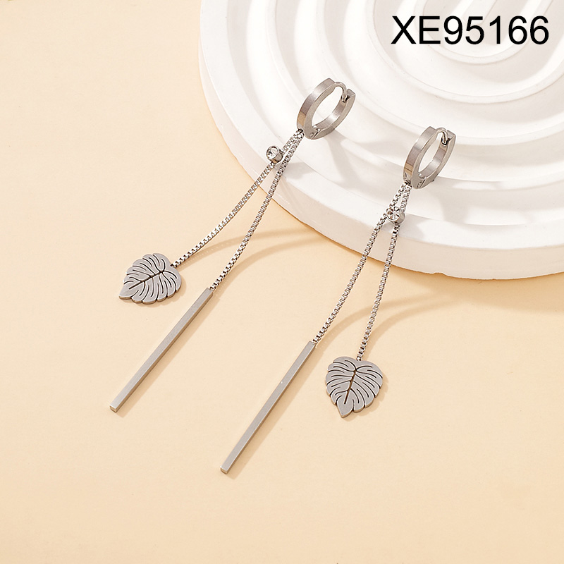 Level B Stainless Steel New Trendy Women Jewelry Leaf Steel color Hoop Earrings