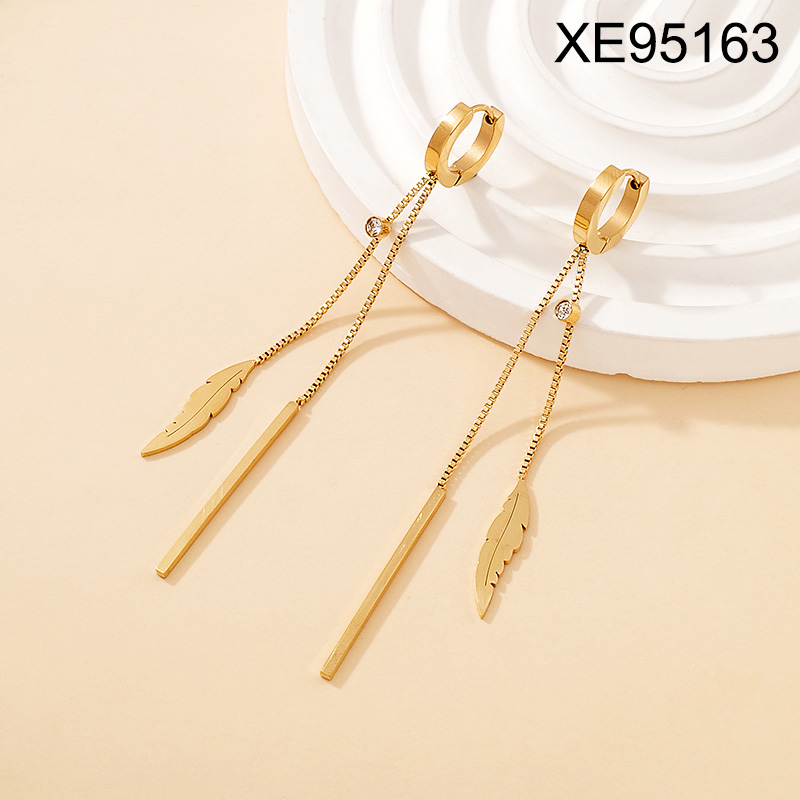 Level B Stainless Steel New Trendy Women Jewelry Leaf Golden Hoop Earrings