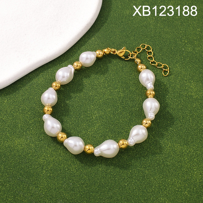 Level C Stainless Steel New Trendy Women Jewelry Pearl Style/Plastic Beads Golden Bracelet