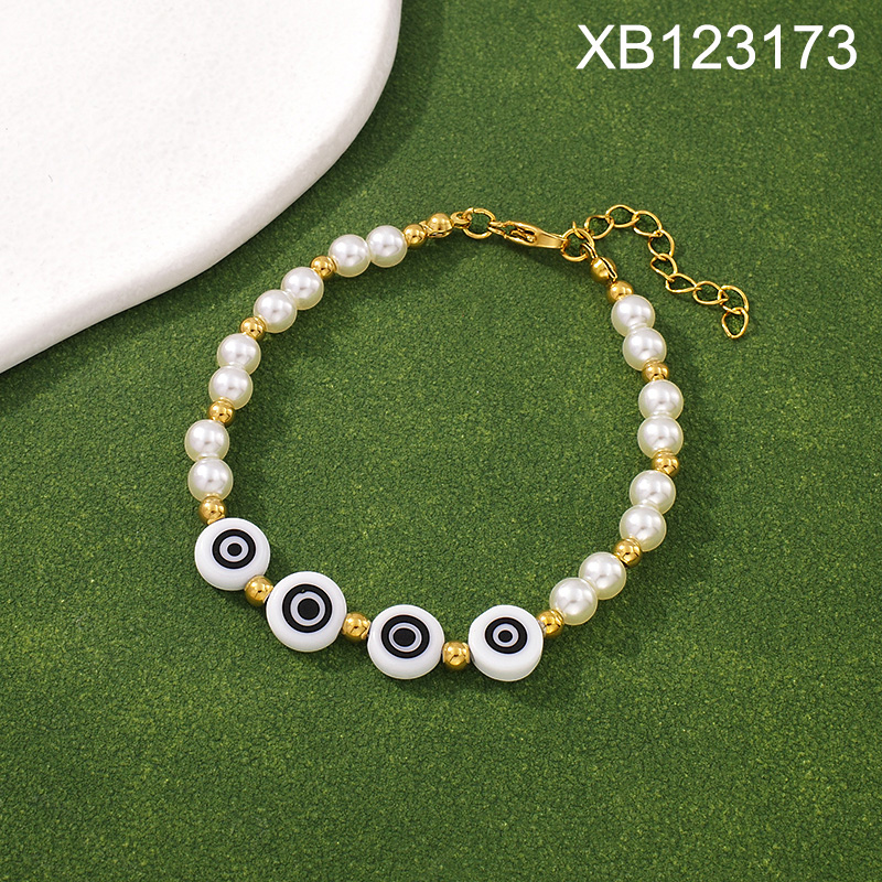 Level C Stainless Steel New Trendy Women Jewelry Pearl Style/Plastic Beads Eye Golden Bracelet