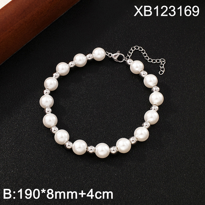 Level B Stainless Steel New Trendy Women Jewelry Pearl Style/Plastic Beads Steel color Bracelet