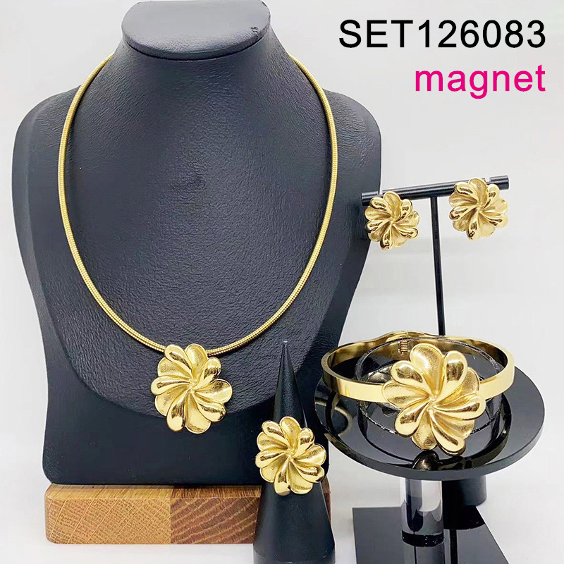 Level B Stainless Steel New Trendy Women Jewelry Flower Golden Magnet 4pcs SET