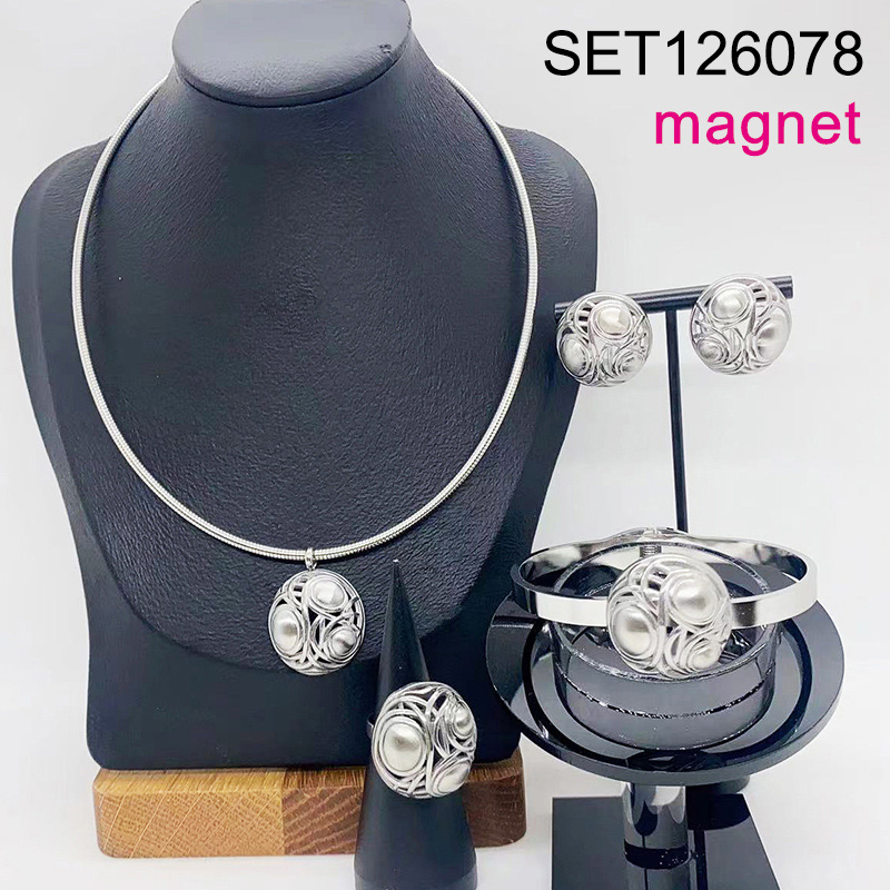 Home > Level B Stainless Steel New Trendy Women Jewelry Geometry Steel color Magnet 4pcs SET