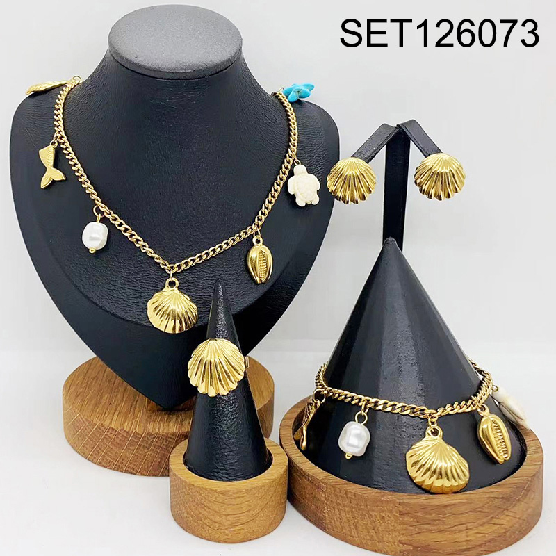 Level B Stainless Steel New Trendy Women Jewelry Summer beach Animal Shell Fish Turtle Golden 4pcs SET