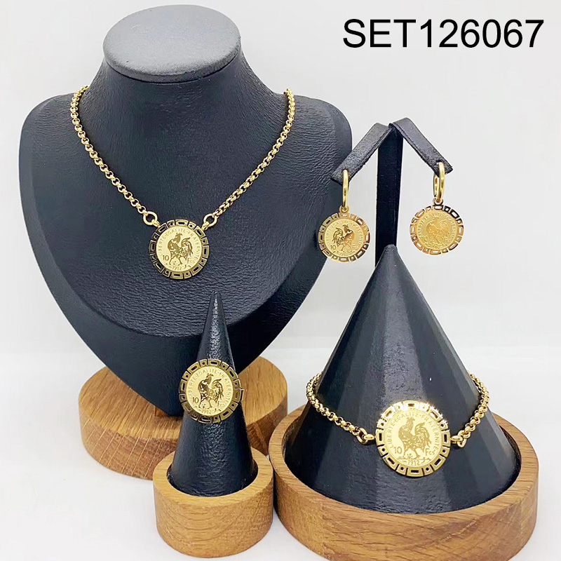 Level B Stainless Steel New Trendy Women Jewelry Animal Chicken Coin Golden 4pcs SET