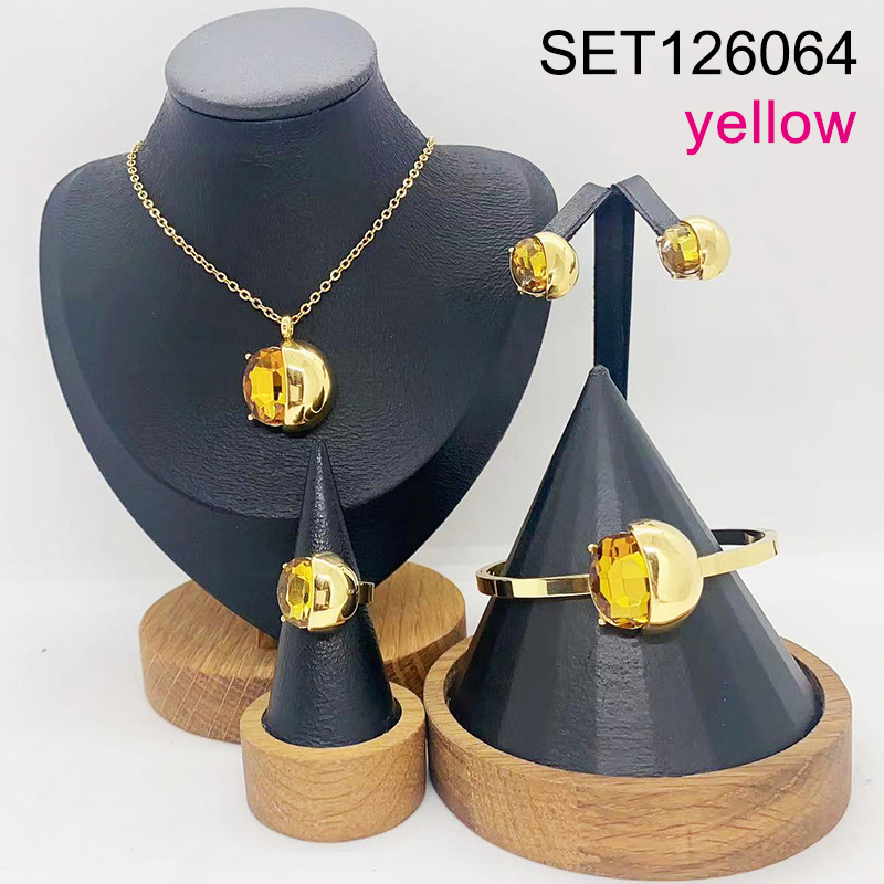 Level B Stainless Steel New Trendy Women Jewelry Oval Yellow Glass Golden 4pcs SET