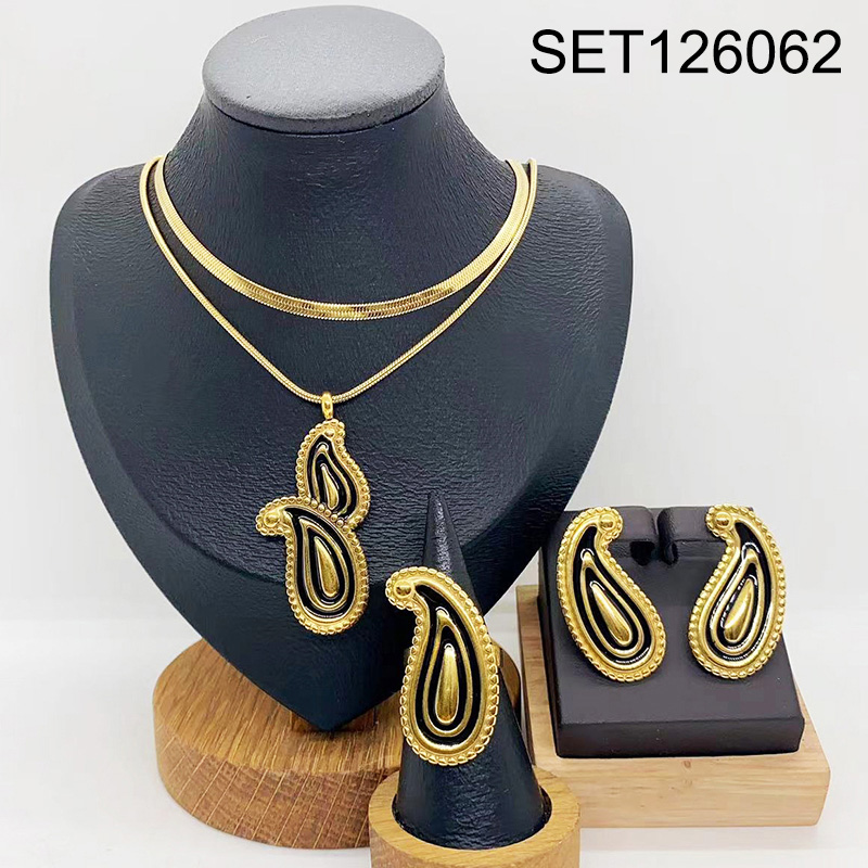 Level B Stainless Steel New Trendy Women Jewelry Water Drip Two Layers Chain Golden 3pcs SET