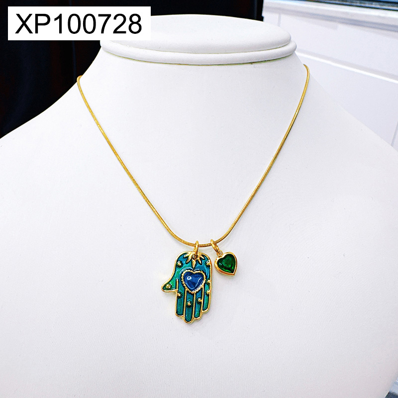 Home > Level B Stainless Steel New Trendy Women Jewelry Drip Oil/Enamel Hand Heart Golden Pendant