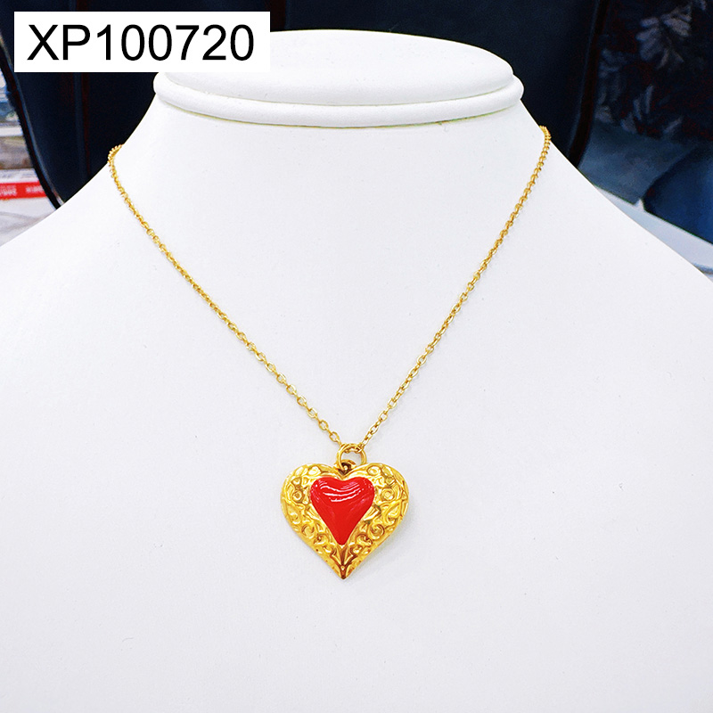 Level B Stainless Steel New Trendy Women Jewelry Drip Oil/Enamel Red Heart Golden Pendant