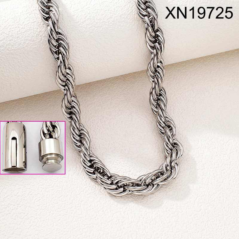 Level B Stainless Steel New Trendy Man Jewelry Twisted Rope Steel color Thick Chain Necklace