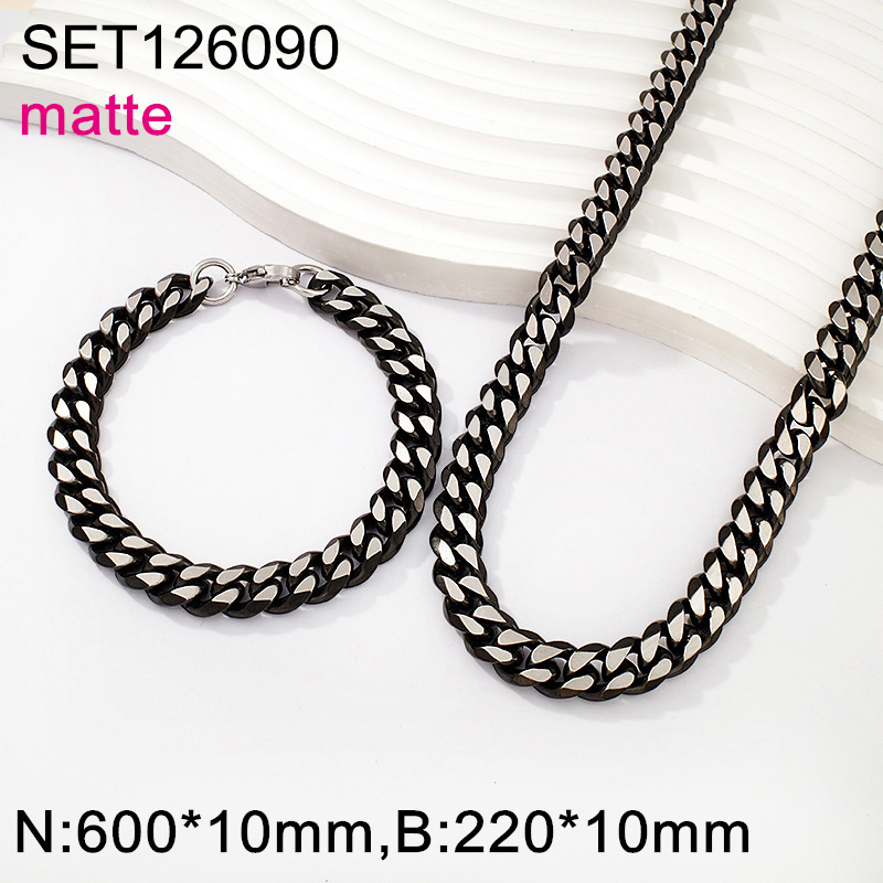 Level B Stainless Steel New Trendy Man Jewelry Two Tone Thick Chain Matte SET