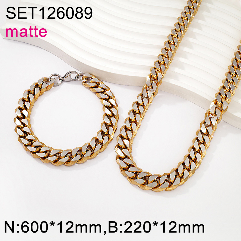 Level B Stainless Steel New Trendy Man Jewelry Two Tone Thick Chain Matte SET