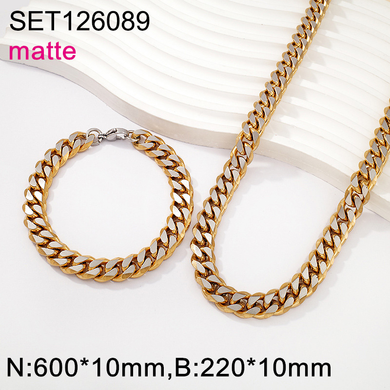 Home > Level B Stainless Steel New Trendy Man Jewelry Two Tone Thick Chain Matte SET
