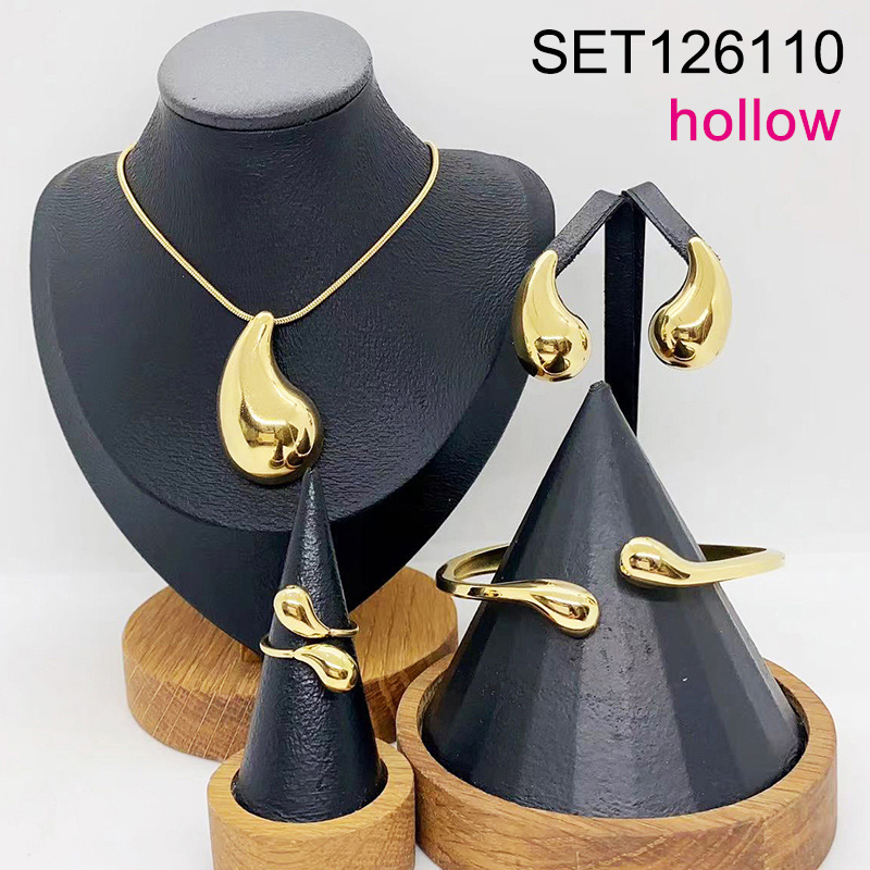 Level B Stainless Steel New Trendy Women Jewelry Hollow Water Drip Golden 4pcs SET