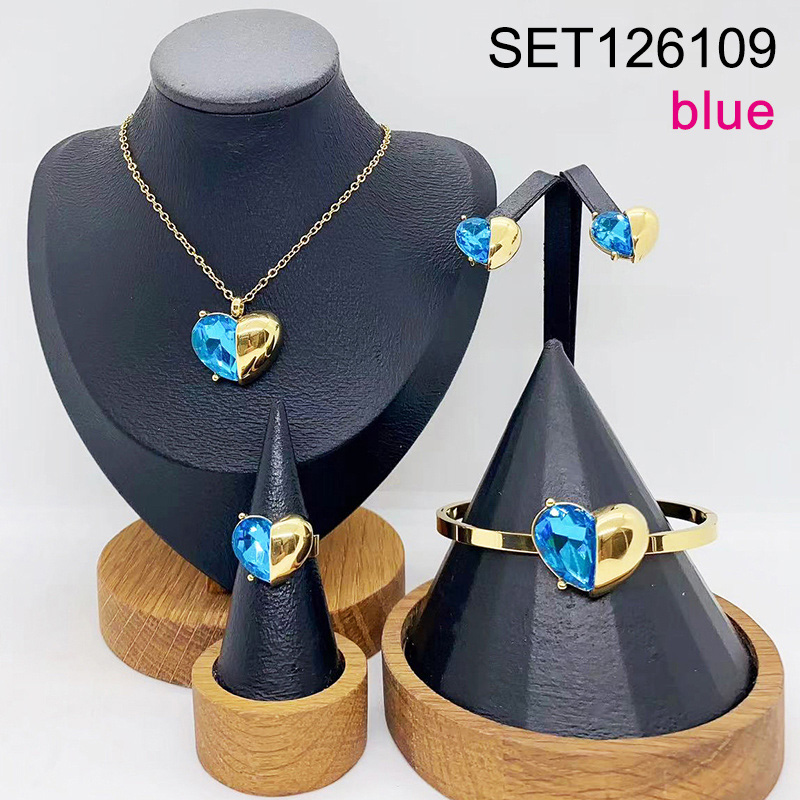 Level B Stainless Steel New Trendy Women Jewelry Blue Heart Golden 4pcs SET