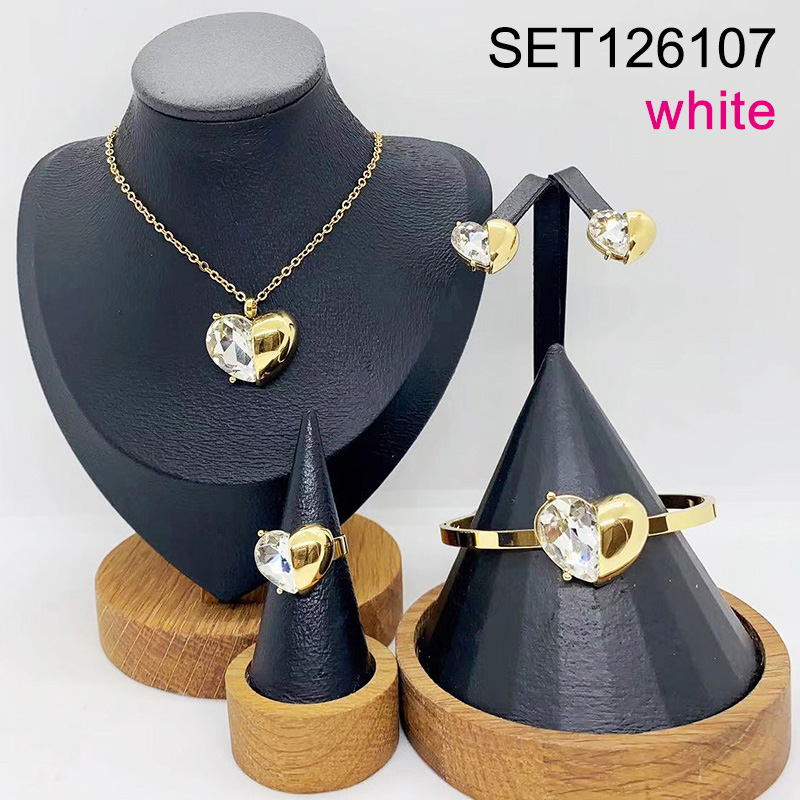 Level B Stainless Steel New Trendy Women Jewelry White Heart Golden 4pcs SET