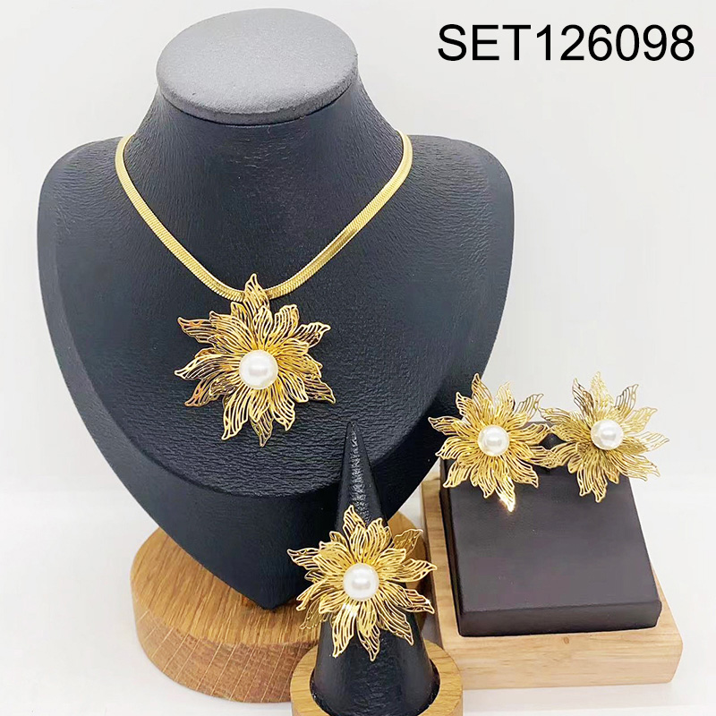Level B Stainless Steel New Trendy Women Jewelry Pearl Style/Plastic Beads Flower Golden 3pcs SET