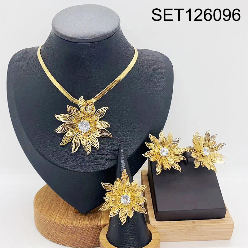 Level B Stainless Steel New Trendy Women Jewelry Flower Golden 3pcs SET
