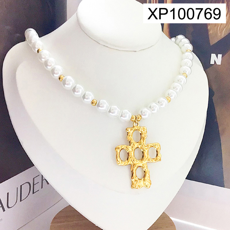 Home > Level B Stainless Steel New Trendy Women Jewelry Pearl Style/Plastic Beads Cross Golden Pendant