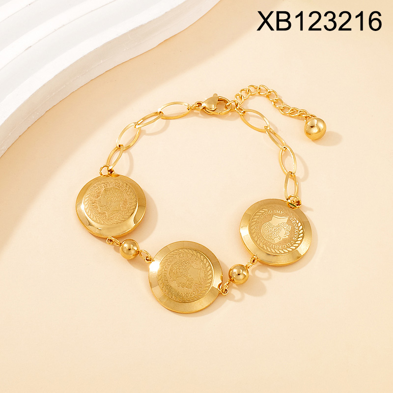 Level A Stainless Steel New Trendy Women Jewelry Coin People Golden Bracelet