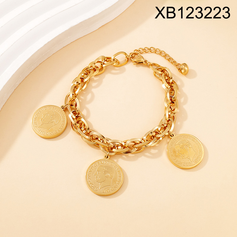 Level A Stainless Steel New Trendy Women Jewelry Coin People Golden Bracelet