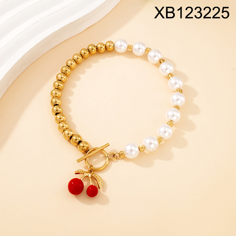 Level A Stainless Steel New Trendy Women Jewelry Pearl Style/Plastic Beads Summer fruit style Cherry Golden Bracelet