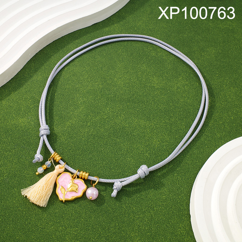 Level B Stainless Steel New Trendy Women Jewelry Drip Oil/Enamel Heart Flower Tassel Golden Pull the rope Pendant
