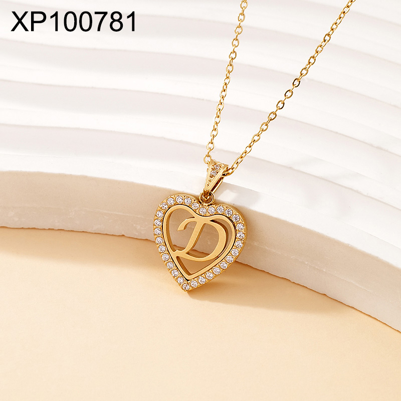 Level A Stainless Steel New Trendy Women Jewelry Heart Letter D Golden Pendant