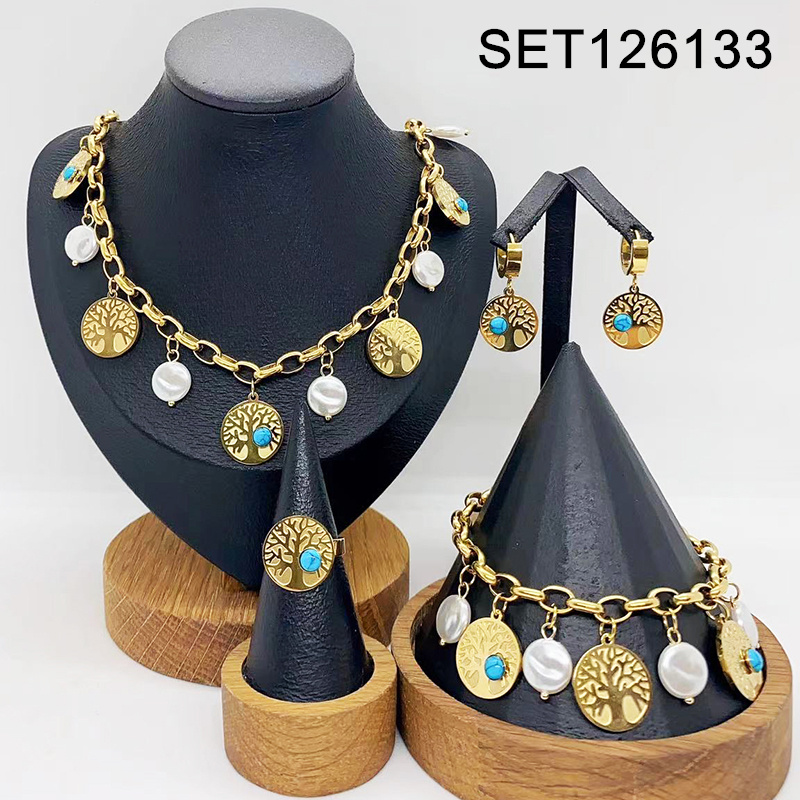 Level B Stainless Steel New Trendy Women Jewelry Pearl Style/Plastic Beads Tree Golden 4pcs SET