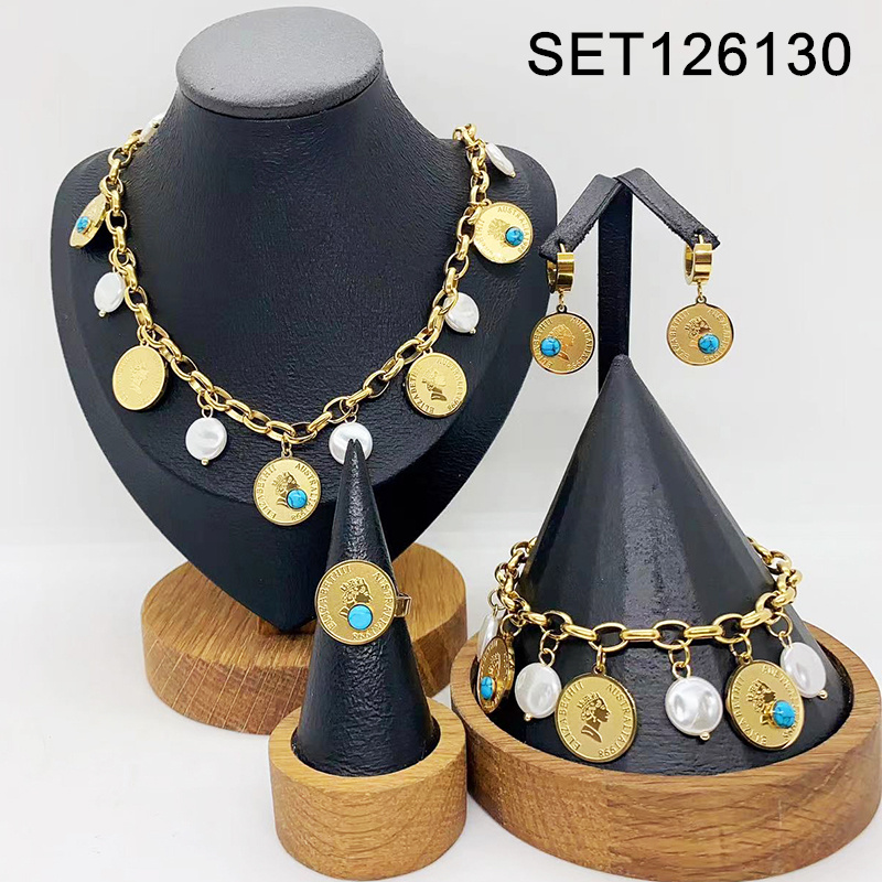 Level B Stainless Steel New Trendy Women Jewelry Pearl Style/Plastic Beads Coin People Golden 4pcs SET