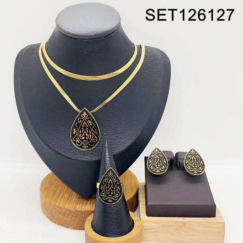 Level B Stainless Steel New Trendy Women Jewelry Two Layers Chain Water Drip Golden 3pcs SET