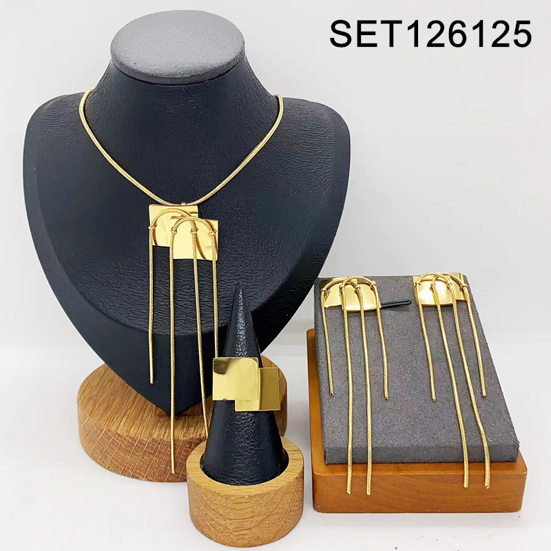 Level B Stainless Steel New Trendy Women Jewelry Square Golden 3pcs SET