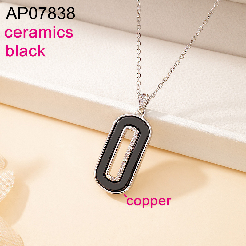 Level B Fashion Jewelry New Trendy Women Jewelry Steel Color Oval Black Ceramics Pendant;Material:copper (cobre)