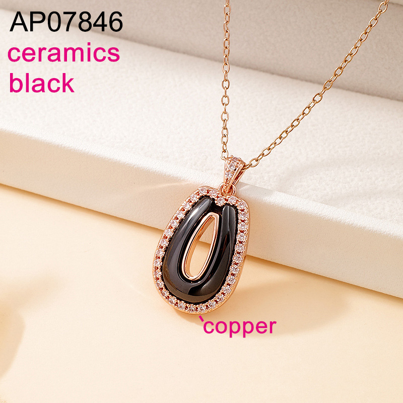Level B Fashion Jewelry New Trendy Women Jewelry Rose gold Water Drip Black Ceramics Pendant;Material:copper (cobre)