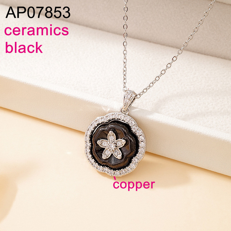 Level B Fashion Jewelry New Trendy Women Jewelry Steel color Flower Black Ceramics Pendant;Material:copper (cobre)
