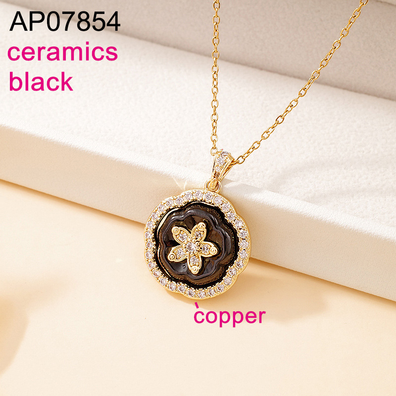 Level B Fashion Jewelry New Trendy Women Jewelry Golden Flower Black Ceramics Pendant;Material:copper (cobre)