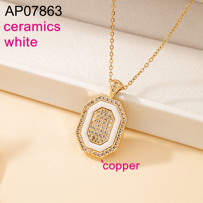 Home > Level B Fashion Jewelry New Trendy Women Jewelry Goldlen Polygon White Ceramics Pendant;Material:copper (cobre)