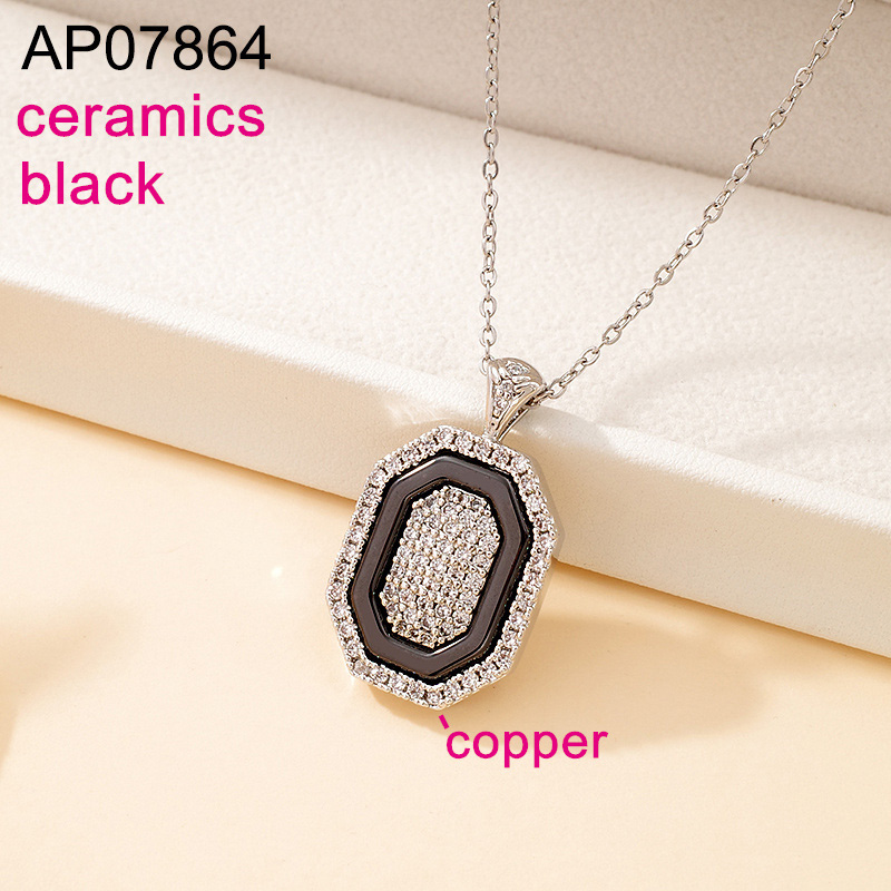 Home > Level B Fashion Jewelry New Trendy Women Jewelry Steel Color Polygon Black Ceramics Pendant;Material:copper (cobre)