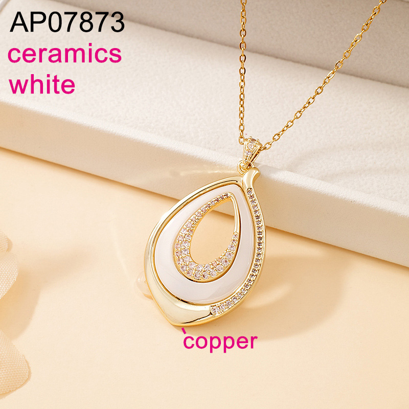 Home > Level B Fashion Jewelry New Trendy Women Jewelry Goldlen Water Drip White Ceramics Pendant;Material:copper (cobre)