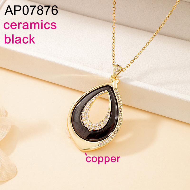 Level B Fashion Jewelry New Trendy Women Jewelry Goldlen Water Drip Black Ceramics Pendant;Material:copper (cobre)