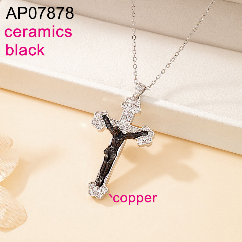 Level B Fashion Jewelry New Trendy Women Jewelry Steel Color Cross Black Ceramics Pendant;Material:copper (cobre)