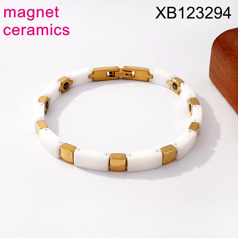 Level B Stainless Steel New Trendy Man Jewelry Golden Magnet Stone White Ceramics Bracelet